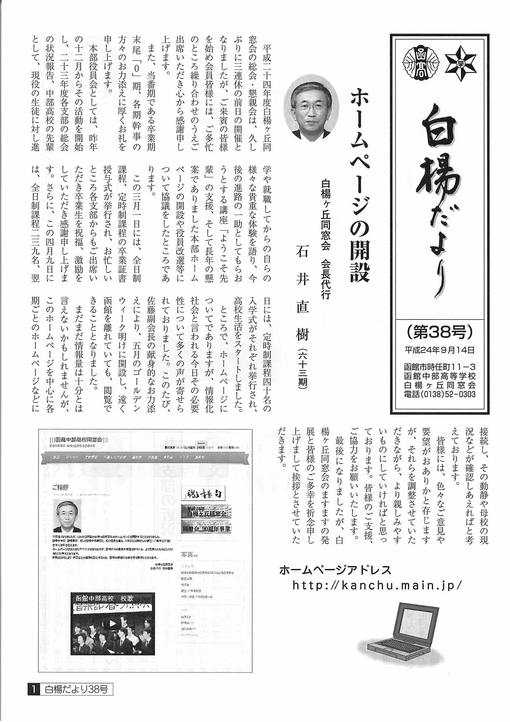■白楊だより 第38号 平成24年9月14日