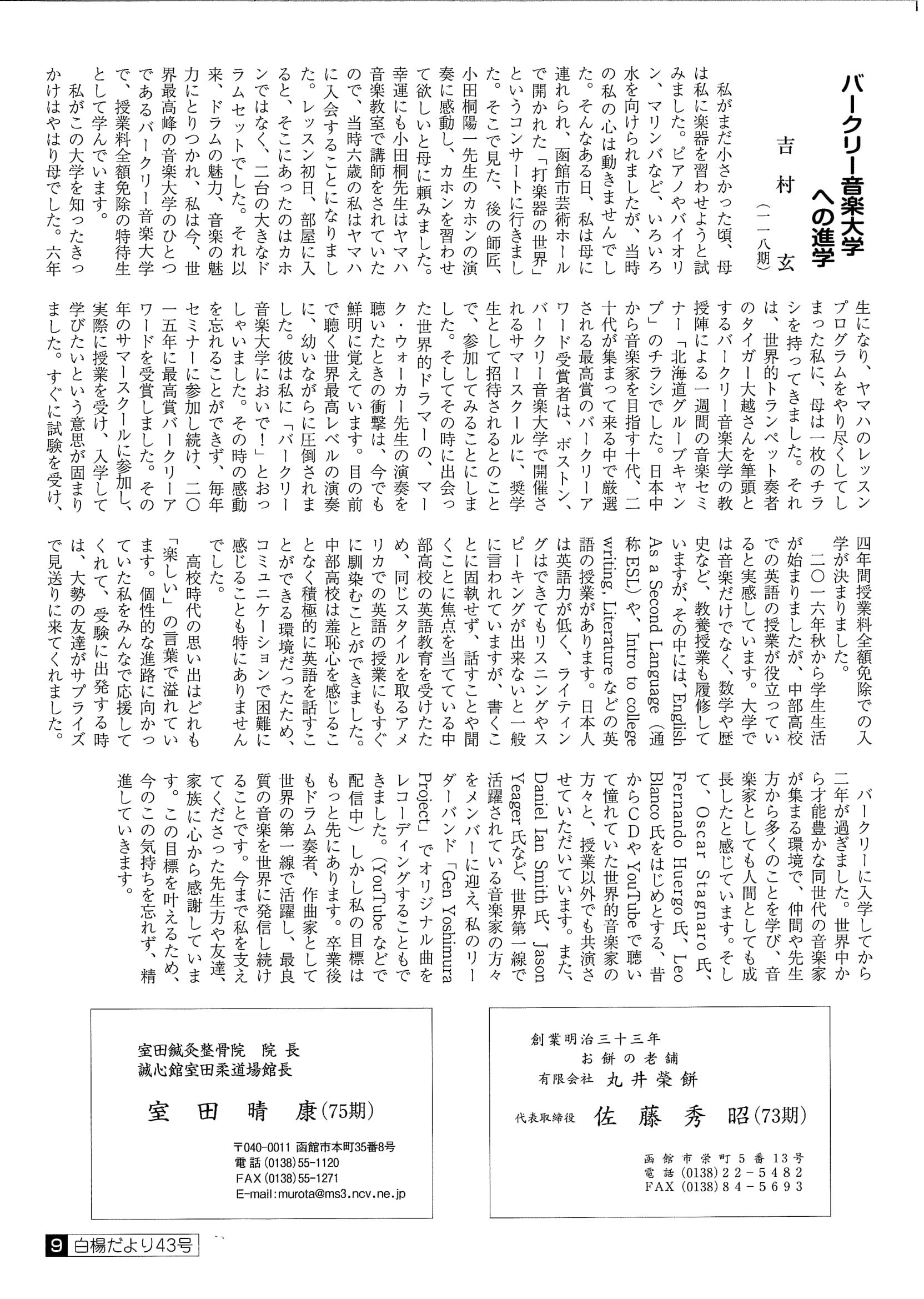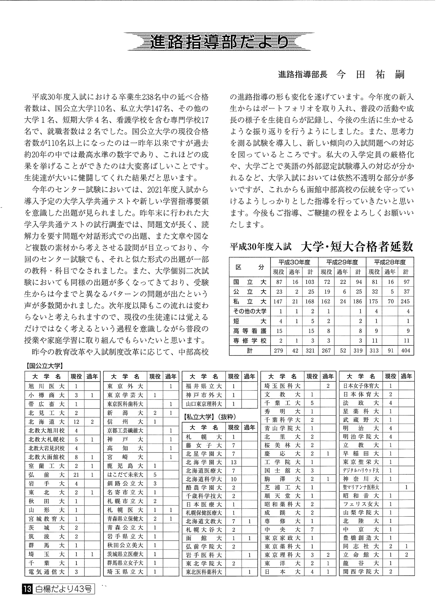 ■白楊だより 第43号 平成30年9月29日