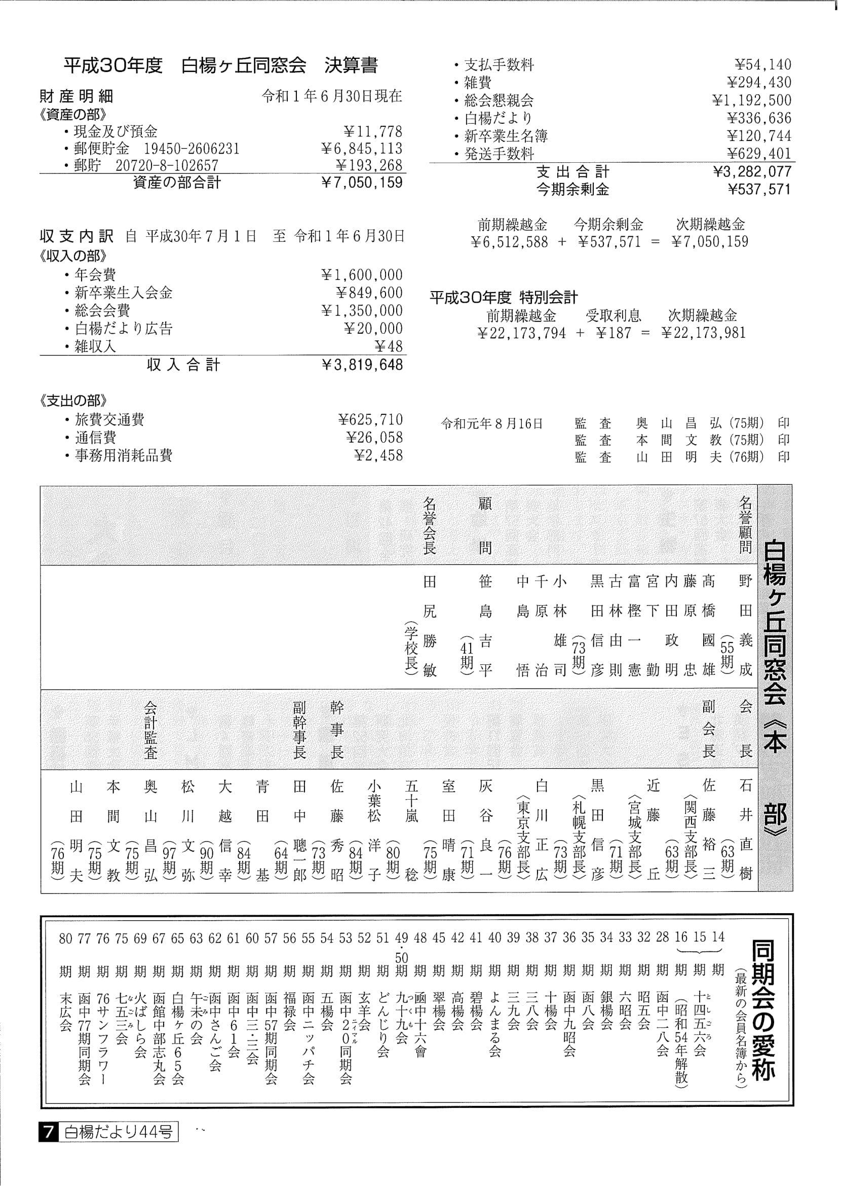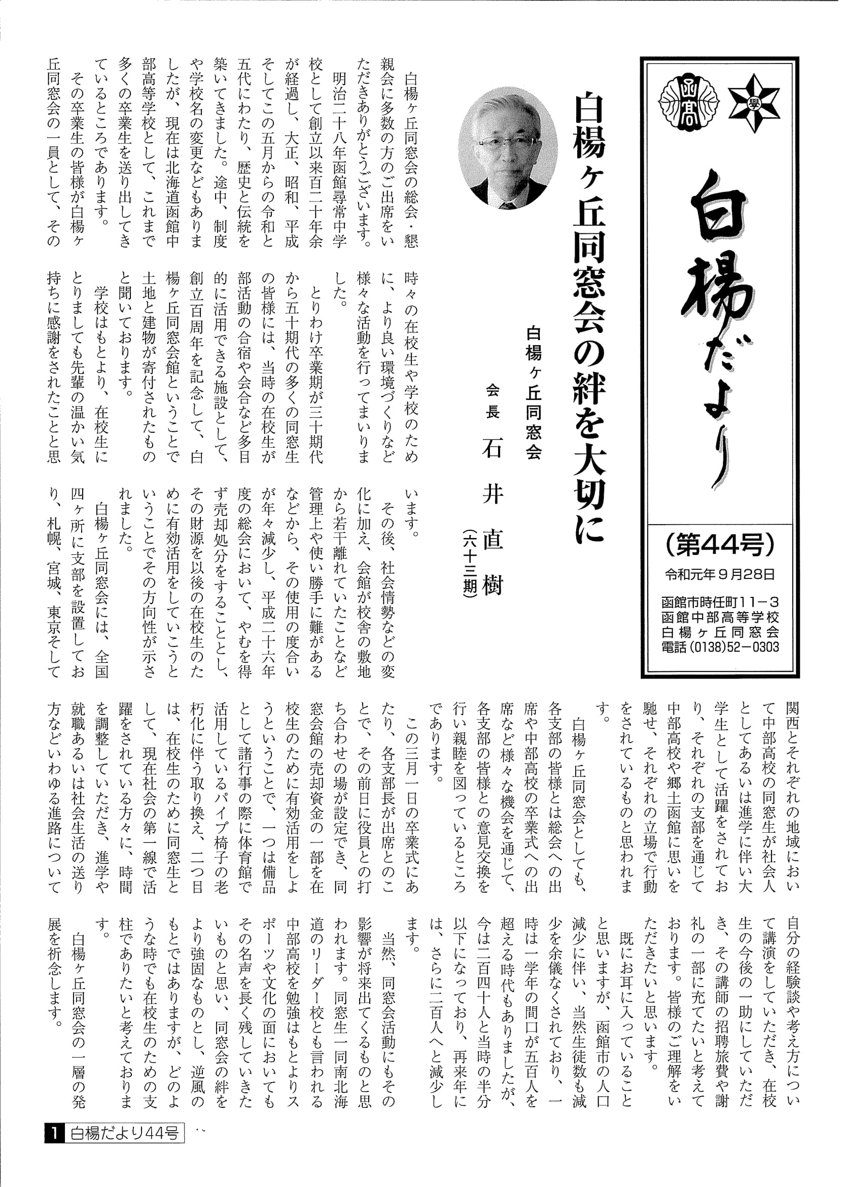 ■白楊だより 第44号 令和元年9月28日