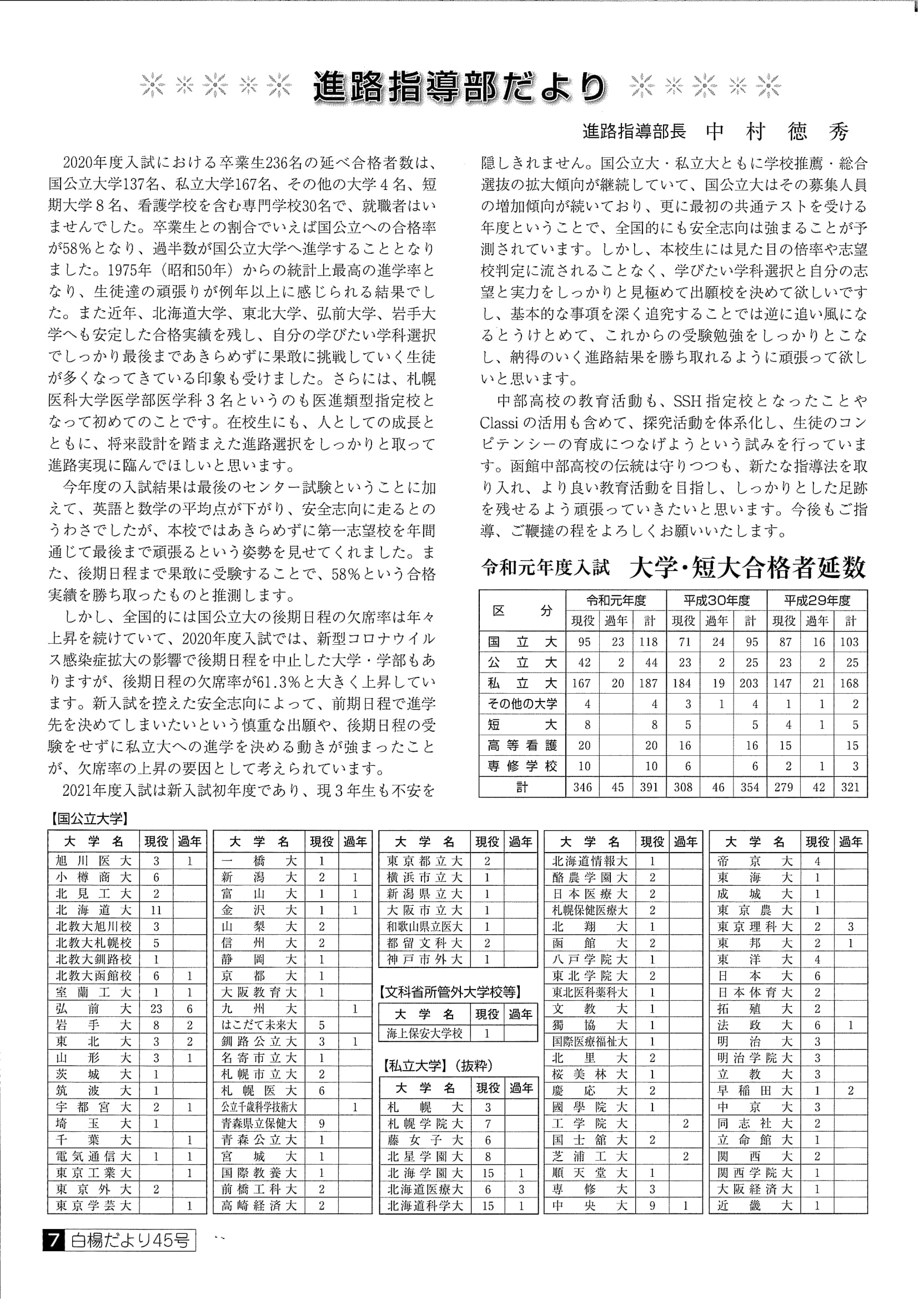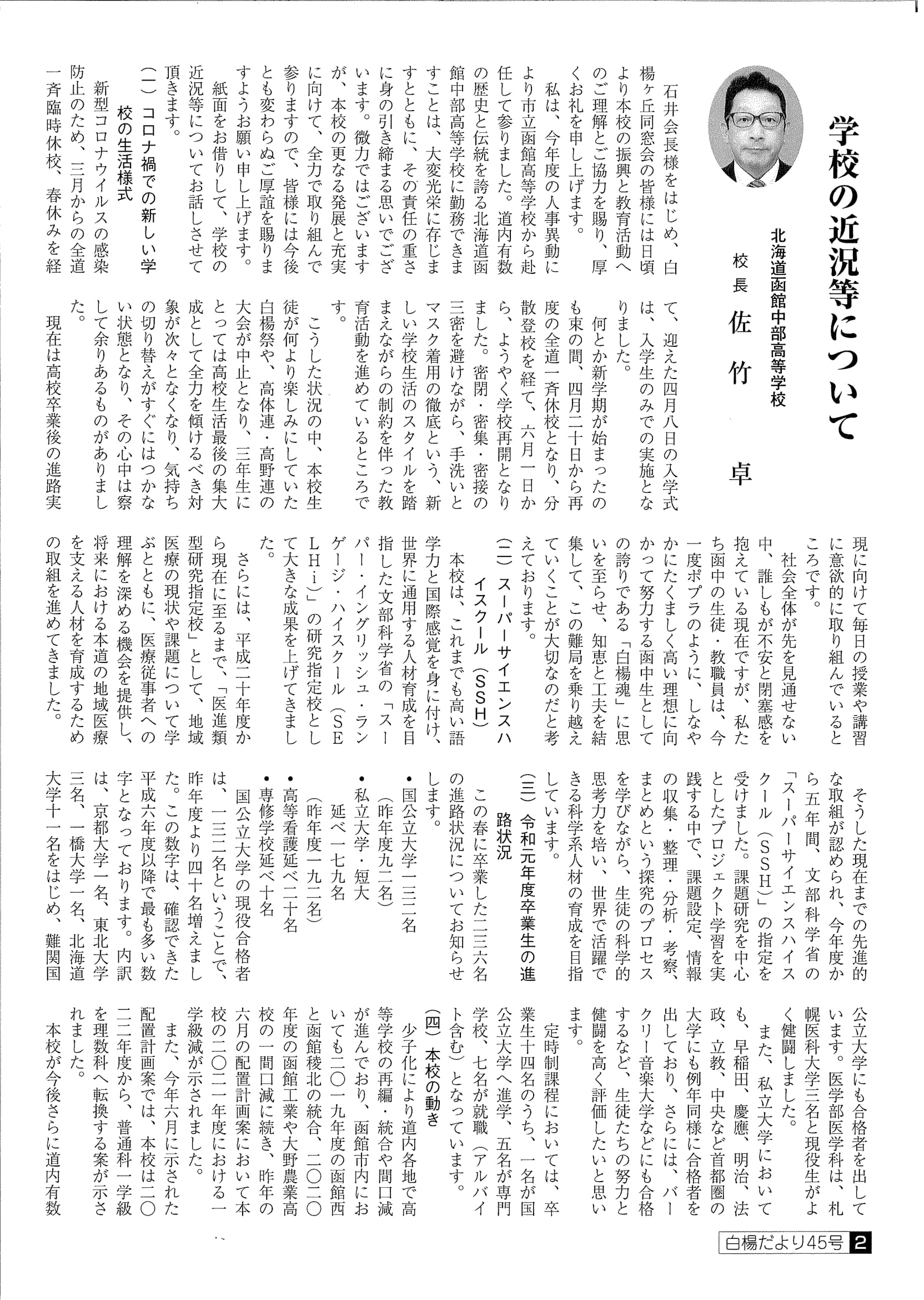 ■白楊だより 第45号 令和2年9月26日