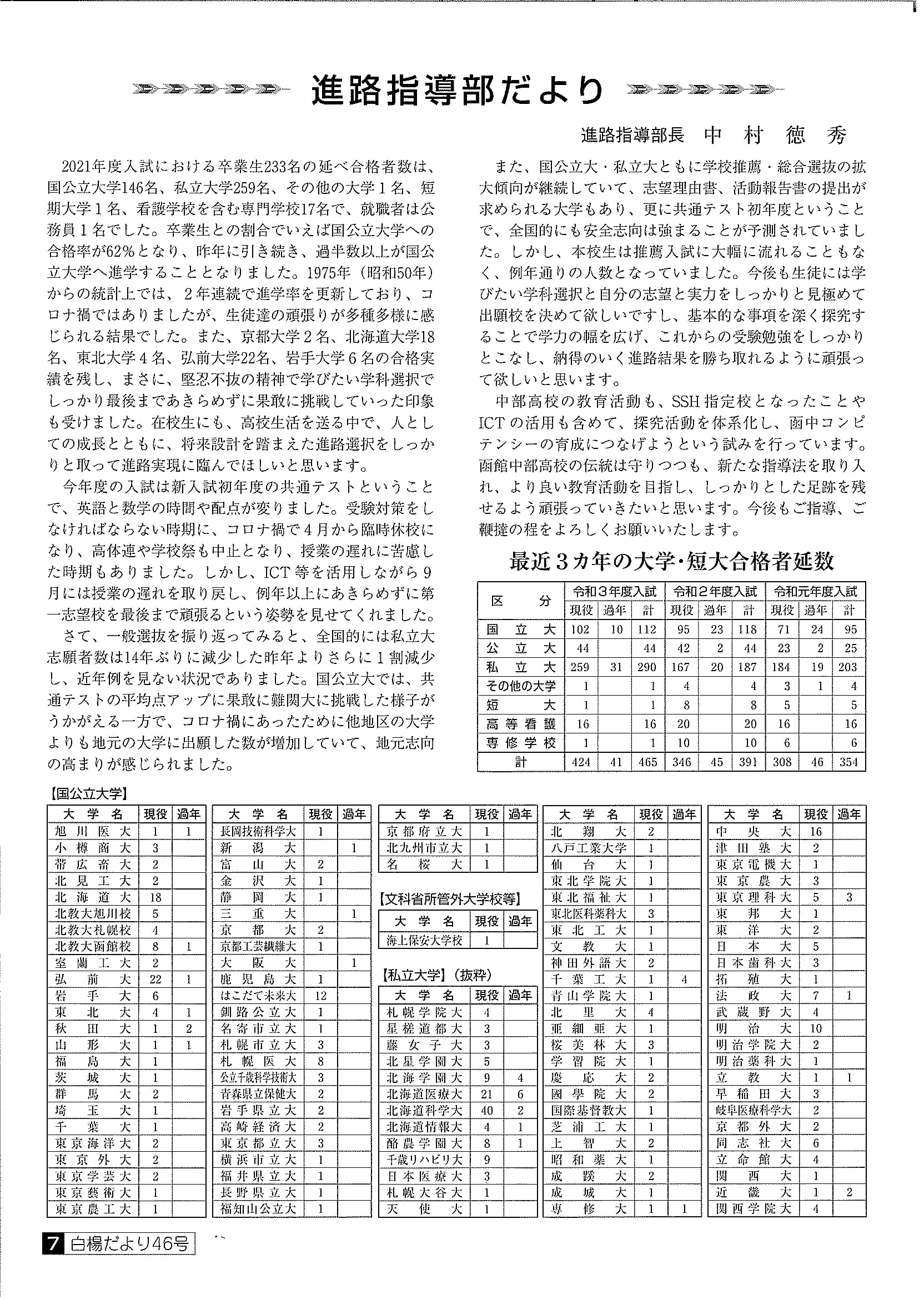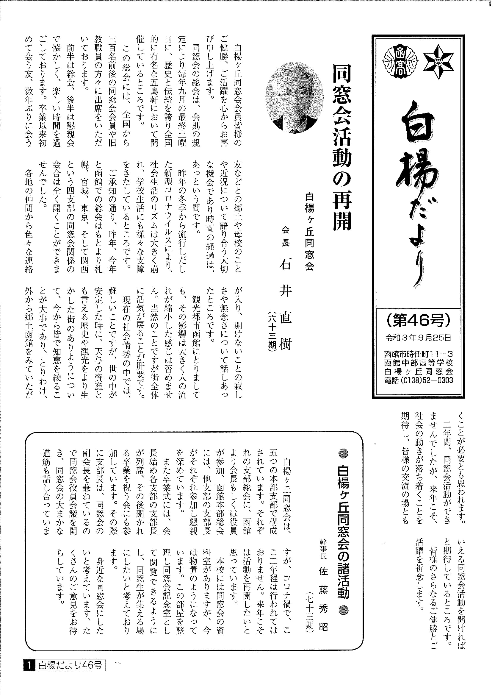 ■白楊だより 第46号 令和3年9月25日