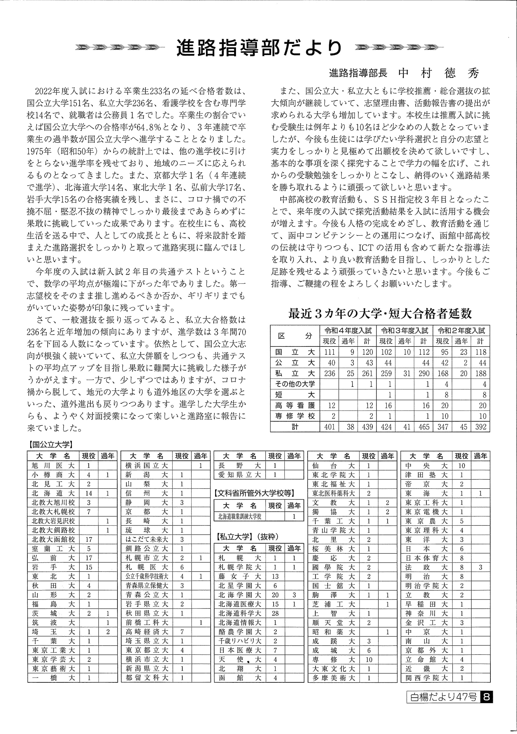 ■白楊だより 第47号 令和4年9月24日
