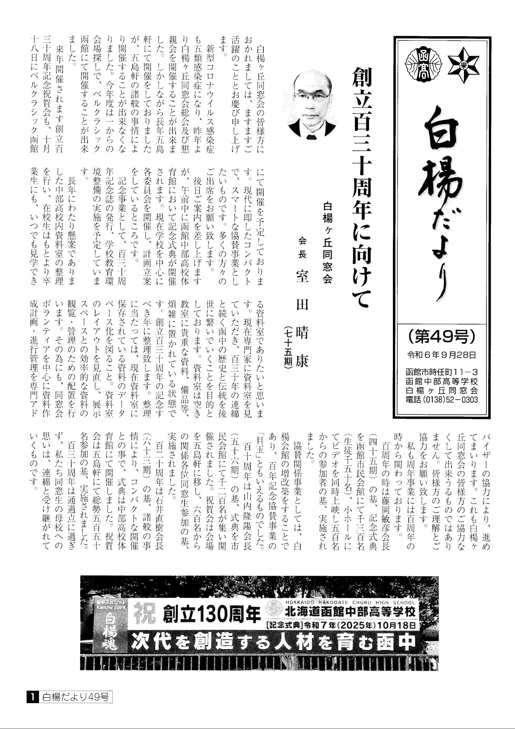 ■白楊だより 第49号 令和6年9月28日